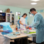Project Mercy Baja has built and operates a school in one of the colonias of east Tijuana. We are pleased to be able to provide more than just school classes. This summer two vans from from the Onnuri church in Los Angeles pulled up to our school. About 18 people spilled out of the vans and immediately unloaded enough dental equipment to transform a large classroom into six dental stations complete with all of the tools necessary for teeth cleaning, cavity repair and more. 30+ community members received free dental services during the day.